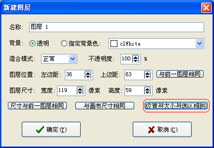 8、点击右下角的图层窗口中的“新建图层”,新建一个图层,图层的大小和位置与选区相同(在“新建图层”窗口中单击“位置与大小与选区相同”)。