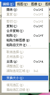 2、上幅图像中人物的面积过于偏大,这时需要调整人物所在图层的大小,点击菜单栏“编辑”——“变换大小”,从而出现相就的八个点,只需要调整相应的八个点就可以改变人物所在图层的大小(在调整的过程中,可以随时拖动人物所在的位置)。当然您也可以通过菜单命令:“图层”——“图层大小”,在弹出的“图层大小”窗口中输入精确的数值来改变当前图层的大小。