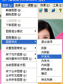 3、添加“外发光”图层样式,点击菜单栏“图层”——“图层样式”——“外发光”。