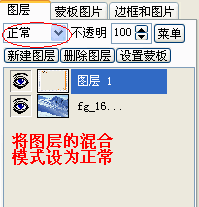 对于不透明的边框,系统在默认的状态下,是将边框图层(上图右中“图层1”)混合模式设为“线性叠加”(“线性叠加”会将图层中比较暗的部分过滤掉,以便让边框层中黑色的区域显示为下面一层的图像),但有些边框可能边框周边也比较暗,如果使用“线性叠加”,会让边框周边也被过滤掉一部分,这时就需要更改边框图层的混合模式,将其混合模式由“线性叠加”改为“正常”或其他的混合模式,然后将中间需要透明的部分用适当的选区工具选中后删除即可。