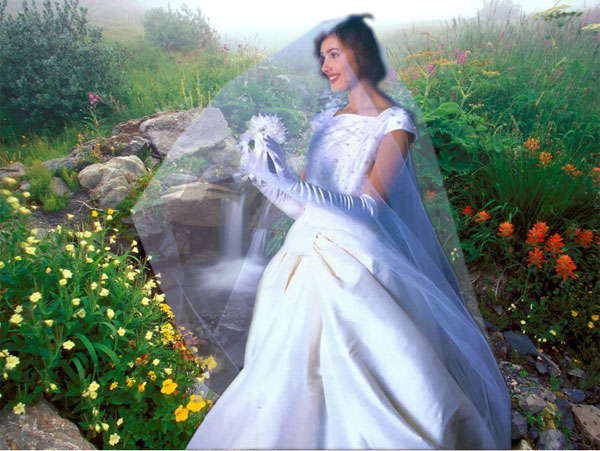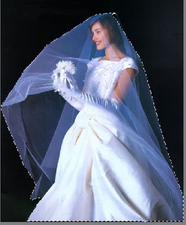 给新娘换背景,最大的因难之处在于怎样处理婚纱,看下面的两幅图的对比。