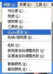 调整选定区域的透明度,操作方法:菜单栏“调整”——子菜单“Alpha通道”