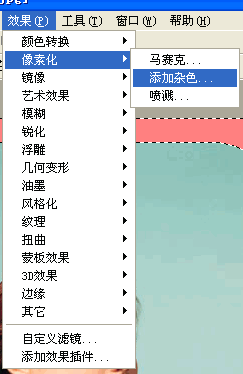 再点击菜单栏中“效果”——“像素化”——“添加杂色”,在弹出的添加杂色的窗口中设置不透明度。