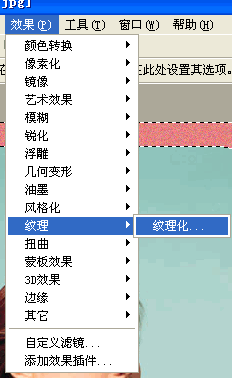 7、填充纹理。单击菜单栏“效果”——“纹理”——“纹理化”,弹出“纹理化”窗口,在此选择合适的纹理,选择的纹理不同就会有不同的效果。
