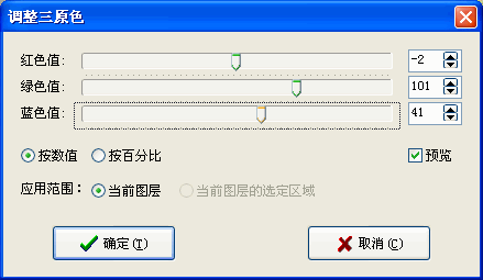 操作方法:单击菜单栏“调整”——“三原色”,从而弹出“调整三原色”的窗口,用户可以调出任一种喜欢的颜色。