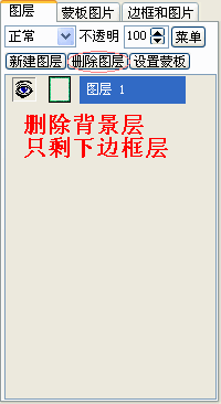 将背景图层隐藏(点前面的小眼睛)或删除(只要隐藏了,不必删除也可以),这样在保存时只保存边框所在的图层。