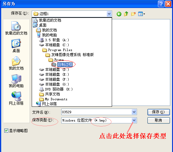 文件保存在:友锋图像处理系统安装文件下的“Frame”文件夹下,建议用户在“Frame”文件夹下,新建一个子文件夹,将边框文件保存在此文件夹下,在此新建一个文件夹命名为“自制边框”,将边框文件保存在文件夹“自制边框”的里面。单确定后,会弹出一对话框,用户选择保存BMP的位数,用户在此要选“32位”(32位的位图是支持透明的一种图像保存格式,用户如选用其他的“位数”,则此边框中间就会变为不透明)。