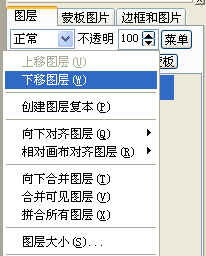 4、分别将两图层下移到灯笼所在图层的下面(点击右下角图层窗口中的“菜单”——“下移图层”)