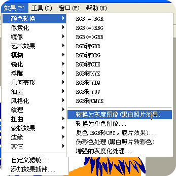 1、打开带有鸡的素材,将图像去色(点击菜单栏“效果”——“颜色转换“——“转换为灰度图像”)。