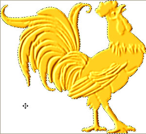 2、将前面做好的“金鸡”抠取到该图层。并创建一个图层复本,将复本图层的金鸡进行“水平镜相”(操作方法:点击菜单栏——“效果”——“镜相”——“水平镜相”)。然后用拖动工具将金鸡放到左下角及右下角。
