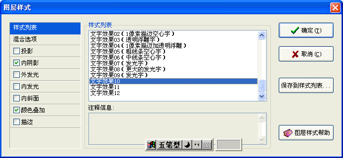同样给文字设置层样式(点击菜单栏“图层”——“图层样式”——“样式列表”中,在样式列表中选择“文字效果10”)。
