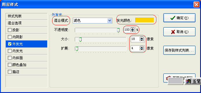3、分别设置两个鸡的图层样式(点击菜单栏“图层”——“图层样式”——“外发光”)。