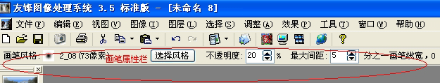 5、从绘图工具栏中选择“画笔工具”并在画笔属性工具栏中选择合适的画笔尺寸及画笔的不透明度(需要细节描绘的地方,画