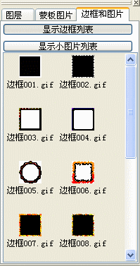 而“边框和图片”面板中可以看到一些边框图片缩略图列表,双击某一边框可以根据当前图层尺寸添加一个相同尺寸的边框: