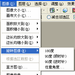 您可以使用菜单命令:“图像”——“旋转图像”命令旋转整幅图像。