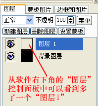 | 提示:《友锋图像处理系统》右下角的“图层”控制面板,相当于一份图层名单(就像学校中的学生名单一样),上面列出的是图像中所有的图层名称列表及相应图层的微小缩略图等。图层内容是显示在图像编辑区(就是软件中间显示大图像的地方)的,