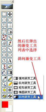 在软件界面左边的“绘图工具箱”中选择“斜向渐变工具”: