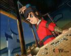 上面制作的动画,动画帧之间并没有任何转场效果,所以过渡不自然,我们可以使用菜单命令:“动画效果”——“插入画面转换动画效果”插入画面间的转场动画。首先在软件左下角的动画帧列表中,选中第一帧: