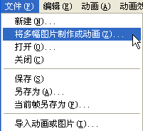 首先启动《友锋动画制作 简化版》,然后点击菜单命令:“文件”——“将多幅图片制作成动画”:
