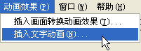 首先用《友锋动画制作》打开图片,然后执行菜单命令:“动画效果”——“插入文字动画”: