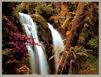 再接着选中图像中的一部分绿色树叶(不必选取的太准确):
