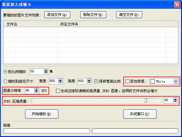 对于“添加背景”选项,只有在使用“缩放到指定尺寸”功能,并且选中“保持宽高比例”时会起到实际作用。