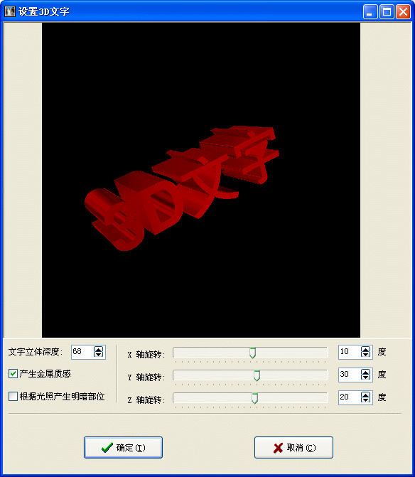 点击“设置3D文字”按钮可以弹出3D文字设置窗口: