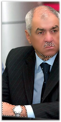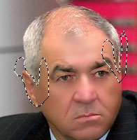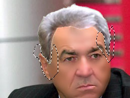 5、下一步就是处理头部,变年轻没有头发可不行,用户如果绘画功底好的话,可以通过手工来给图像绘制头发,在这里,本人就用其它的素材来合成一幅图像,打开一幅图片,用“多边形选取工具”将人物的头发选出来,再进行复制,然后回到图像所在的窗口进行“贴粘”,这时系统会动新建一个图层,就是头发所在的图层。
