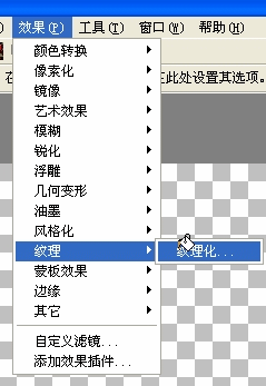 菜单栏中“效果”——子菜单中“纹理”——“纹理化”在出现的纹理对话框中我们选择“云.bmp”(如果您的软件中没有这个纹理文件,可以在本站下载)。